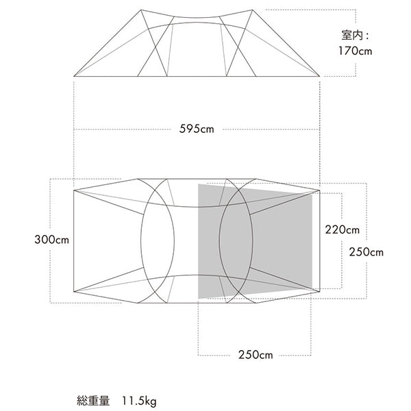 ・サイズ:W595cm×D300cm×H170cm(室内)