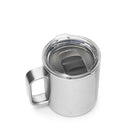 一見普通のマグカップですが、保温保冷性能を備えておりコーヒーを注いだ瞬間から最後の一口まで熱く保つことができます。とってが付いている事で熱い物でも気にせず持つことが出来、アウトドアだけでなく毎日のオフィスワークにも使う事の出来るオシャレなデザインです。マグは飲み口が大きく、お手入れが簡単で飲みやすいのが特徴ですが、反面冷めやすいという弱点があります。しかしこのマグには蓋が付属していますので最後まで暖かいものは暖かいまま、楽しんでいただけます。