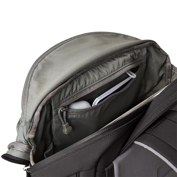 ・FLIP-TOP VAULT POCKET:内側と外側の両方からアクセスできる両面ポケットで、毎日の必要なギアをすぐに取り出せます。ポケット部分を反転させればメインコンパートメントの開口部が広くなり、ギアの出し入れも簡単です。