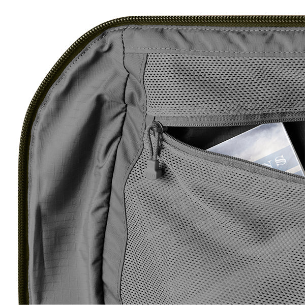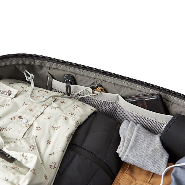 2つの仕切りパネルで荷物をすっきり整理でき、フォームウォールとしっかりとした構造で、荷物を入れても型崩れしにくいのが特徴です。さらに、内側でも外側でも使えるコンプレッションストラップで、荷物の量に合わせて調節し、スマートに持ち運べます。