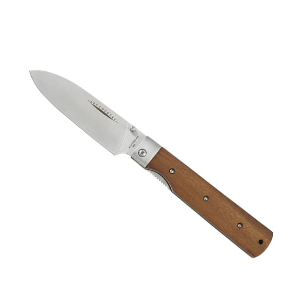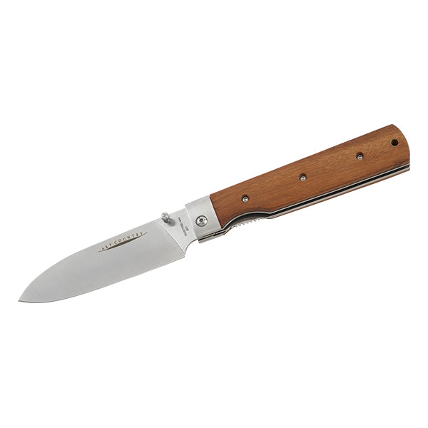 持ち運びに便利、さらに片手で素早くブレードを展開できるライナーロック式で、それぞれの手のひらに収まる大きさで使いやすく、それぞれの料理に対応できるようになっています。ハンドルは固い木材のタガヤサン天然木を使っていて、ブレードには錆に強い440Cステンレスを採用しています。