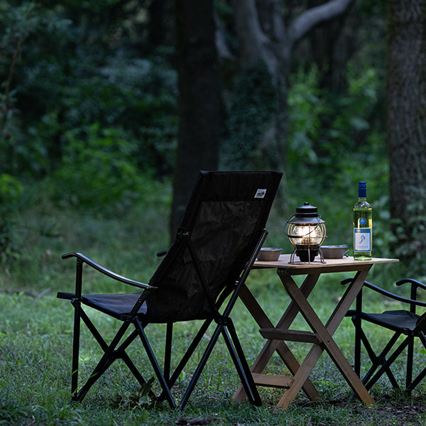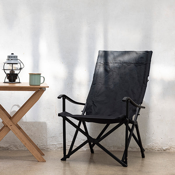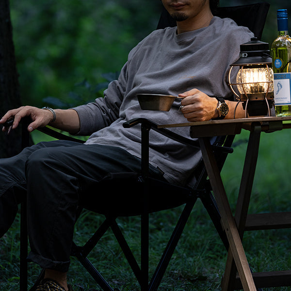 座面高は、一般的なアウトドアテーブルとの相性が良く、キャンプで優雅な食事からリラックスタイムまでお楽しみいただけます。チェアから立ち上がる際に持ちやすい高さのアーム部は、腕にフィットするカーブ形状で、考え抜かれたフレームはアルミで軽量・コンパクト設計。コストパフォーマンスの高い商品です。