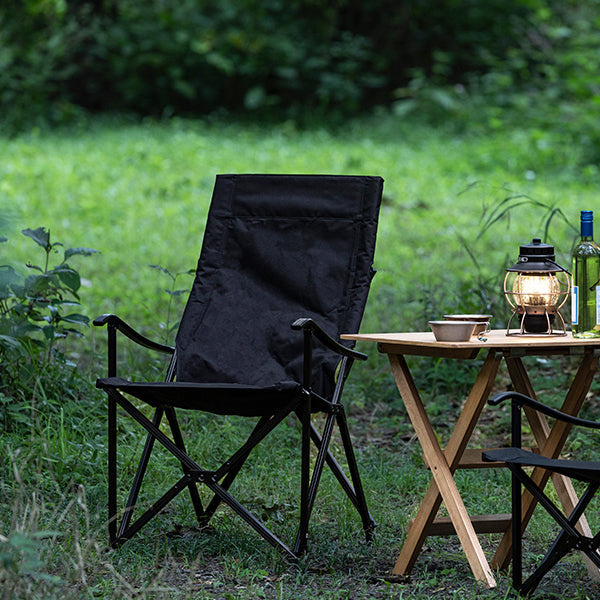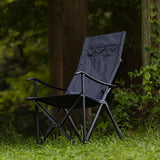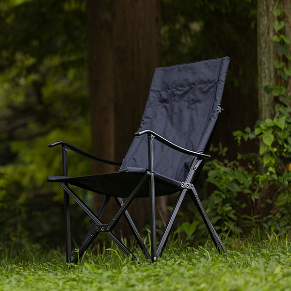 ADIRONDACK キャンパーズチェア ブラックは、ひじ掛け付きでハイバックと、贅沢な気分が味わえるアウトドアチェア。