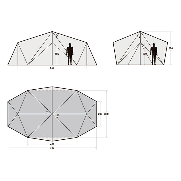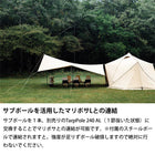 ・付属品:本体、センターポール、サブポール×4、ハンガーテープ×2、ペグ×20、3mロープ×8、2mロープ×8、キャリーバッグ、ポールケース、ペグ・ロープケース