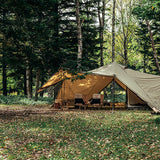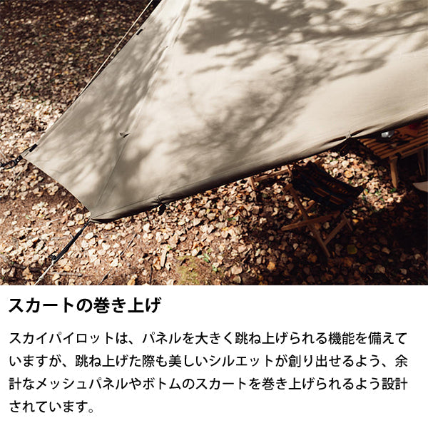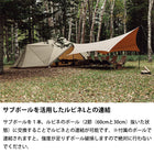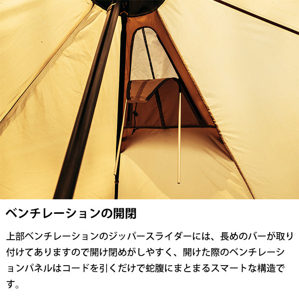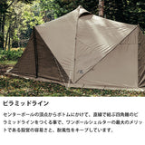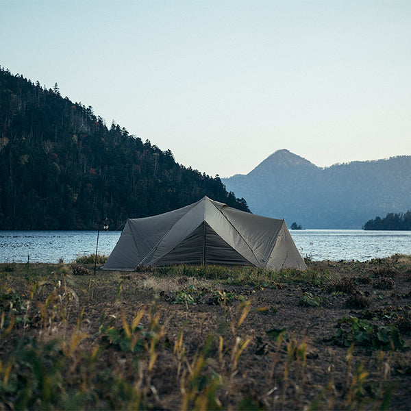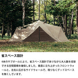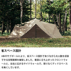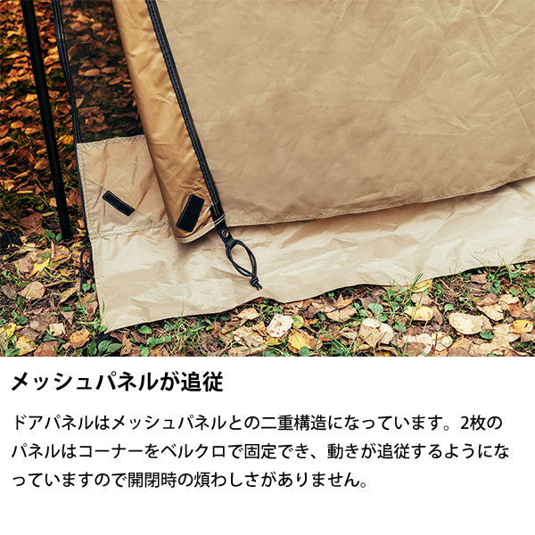 省スペース設計でありながら、サブポールを用いることでデットスペースを無くし、空間を最大限に確保した大型シェルターです。TC素材に比べ軽量でコンパクト、防水仕様となり、メンテナンスが簡単で、設営・撤収も容易で誰にでも取り扱いやすいモデルです。Syntheticモデルは軽量・高強度のアルミ合金(A6061)ポールを採用しており、付属のアルミ合金ポールは各TCモデルとも互換性があります。