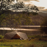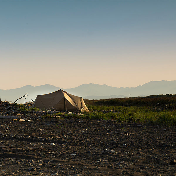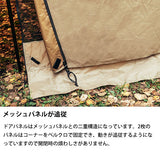 ※シンセティック(化繊)生地はコットン生地に比べると生地自体の水分含有量が低く、焚火等の火の粉で生地に穴があきやすい為、テント設置の際は必ず火元から離れた場所に設置するようお願いします。