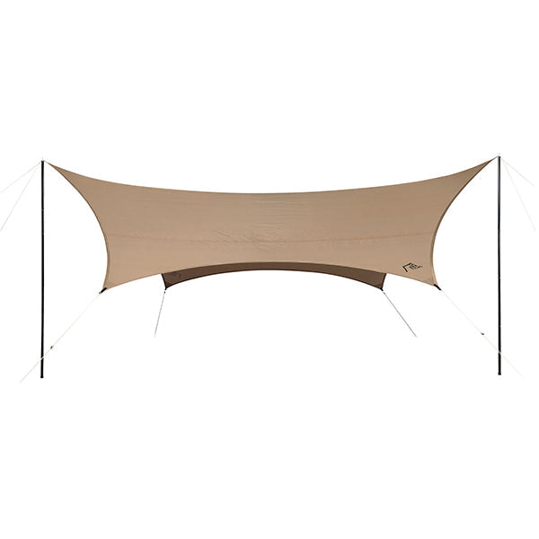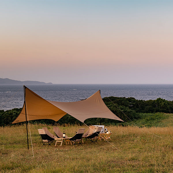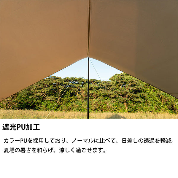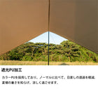 ※シンセティック(化繊)生地はコットン生地に比べると生地自体の水分含有量が低く、焚火等の火の粉で生地に穴があきやすい為、タープ設置の際は必ず火元から離れた場所に設置するようお願いします。