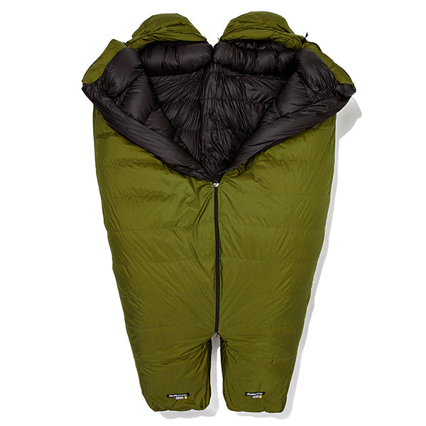 SABBATICAL サバティカル オーロラ600DXカップラー グラスグリーン レギュラーは防水透湿素材オーロラテックスを採用したシュラフカバーの要らないオールラウンドで、4シーズンで使用可能なオーロラ600DXを2個セットにし、連結できるように設計された商品です。それぞれを個別で使用することも可能ですが、連結した状態では大人1名、子供1名でゆったりと使用することを想定して作っております。大人2人と小さなお子様を間に入れて3名で使用することも可能ですので、安心してお子様とキャンプを楽しんで頂ける仕様となっております。